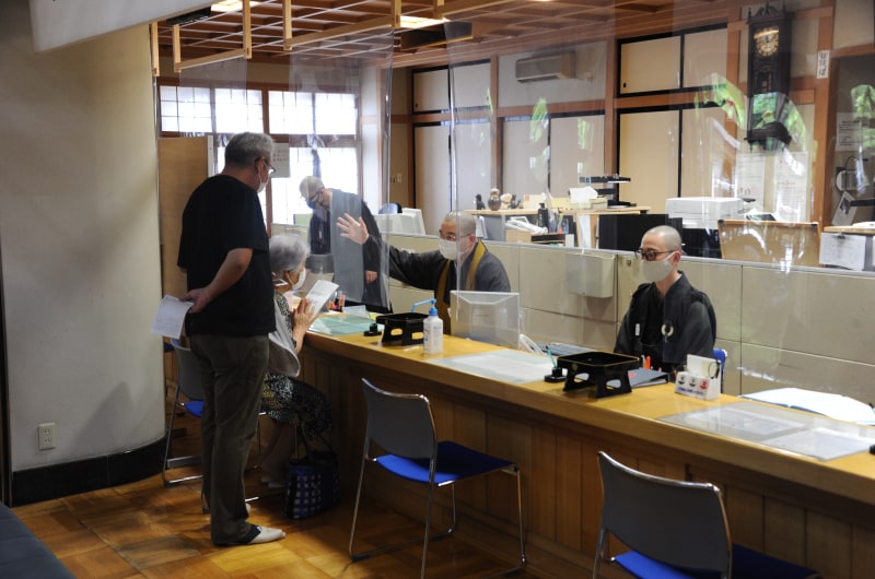 勧化室や祠堂殿法要会場等の密になりやすい箇所は、椅子を大幅に減らし一部屋に入る人数の制限を行っております。