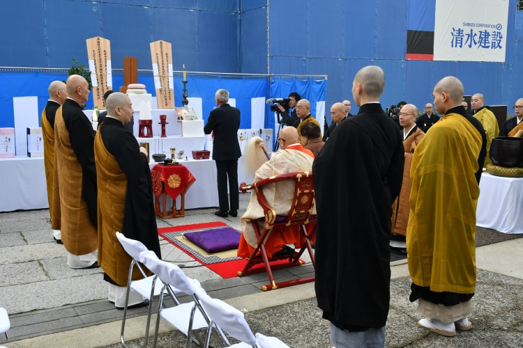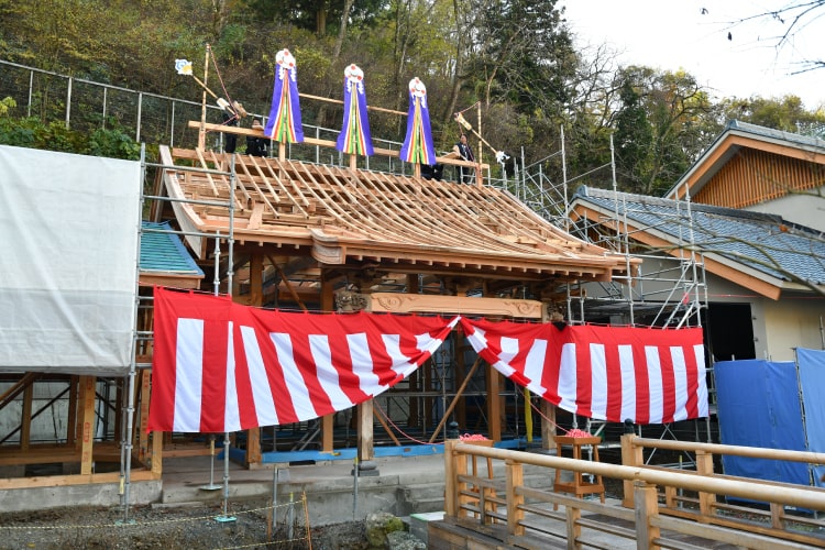 11月21日、「栢樹庵」及び門前宿泊施設「柏樹關」上棟式が厳修された。晴れ渡る空の下、関係者ら約160人が出席し、午前十時半より導師熊谷後堂のもと上棟式が、そして引き続きにて工匠式(上棟之儀)が行われた。神事では、「曳綱之儀」にて棟木を参列者全員で引き上げたのち、「槌打之儀」にて「千歳棟(せんざいとう」「万歳棟(まんざいとう)」「永永棟(えいえいとう)」の掛け声と共に棟木を打ち納め、工事の無事と、竣工後も建物とそのご縁の皆々様が永遠に平和でありますようにと祈願した。「栢樹庵」「柏樹關」の完成は共に来年5月末の予定。